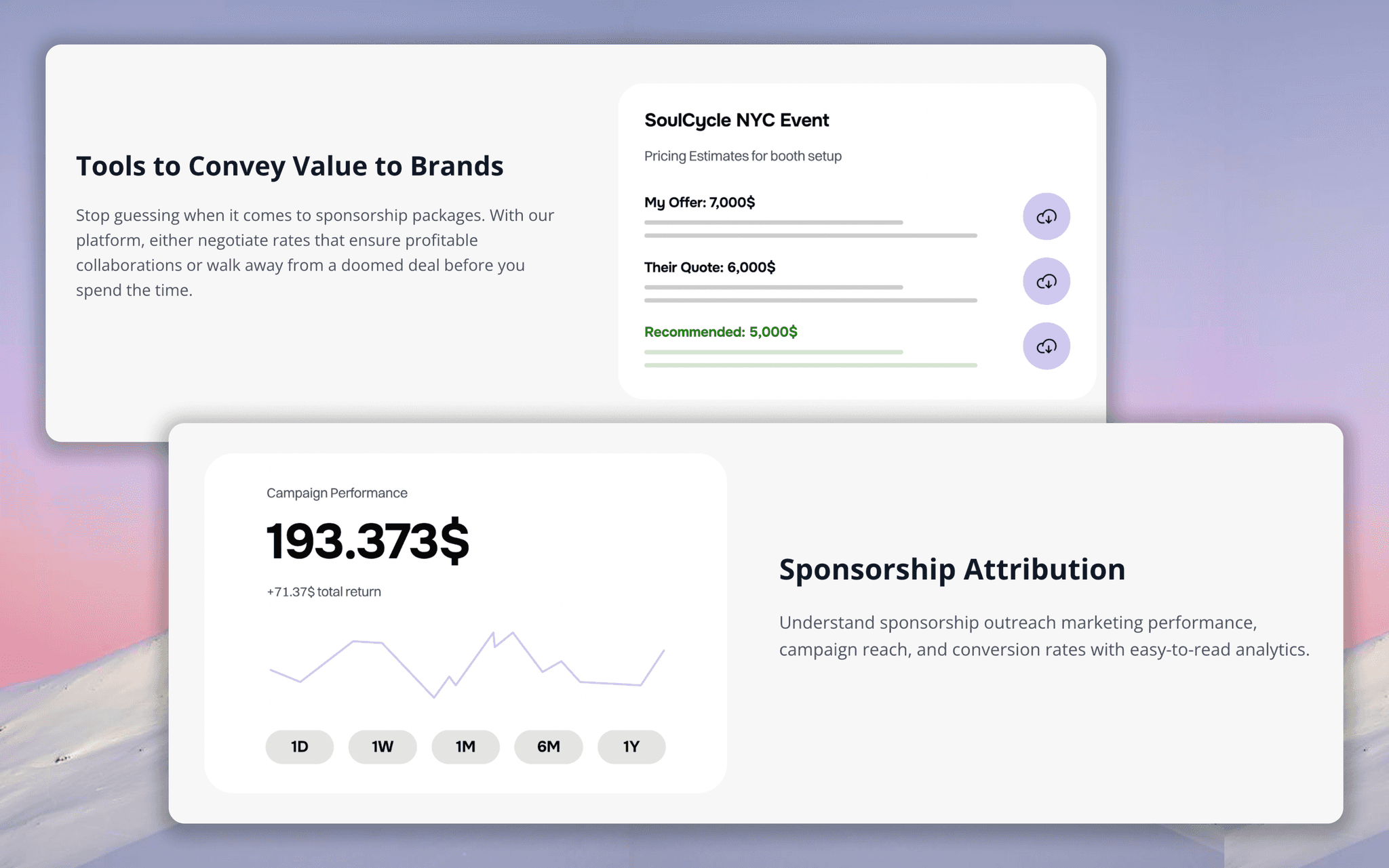 I sketched several layout options and tested different messaging hierarchies before landing on a structure that led with the pain point (sponsorships take too long), introduced the solution (AI-powered matching), and ended with a clear CTA. I built the final page in Framer, iterating on copy and visuals until the flow felt tight. The goal was a page that answered "what is this and why should I care" within the first scroll.